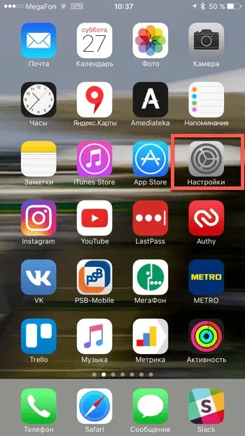 - На главном экране iPhone / iPad выберите приложение Настройки .
