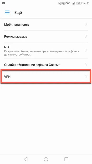 - В секции сетевых настроек нажмите "Еще" и выберите опцию "VPN".