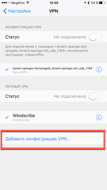 - Выберите опцию VPN (или перейдите в меню "Основные > VPN"), затем нажмите Добавить конфигурацию VPN .